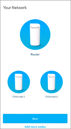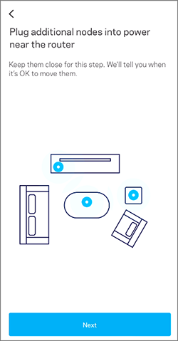 7. Si vous n'avez pas allumé votre nœud secondaire, assurez-vous d'allumer le nœud secondaire près du nœud principal, puis appuyez sur Next (Suivant).