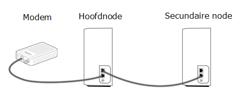 4. Sluit een ethernetkabel aan op de secundaire node en sluit het andere uiteinde van de kabel aan op de hoofdnode. U kunt verbinding maken via de WAN- of LAN-poort van de secundaire node met de LAN-poort van de hoofdnode. De nodes schakelen automatisch over naar een bekabelde verbinding.