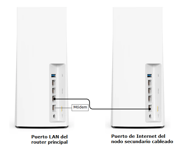 9. Conecte un cable ethernet desde el puerto de Internet del nodo secundario a un puerto LAN del router principal.