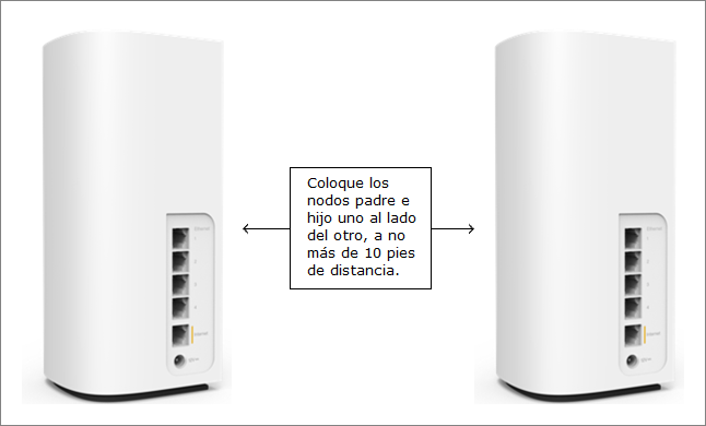 4. Si va a añadir nodos secundarios, colóquelos cerca del router principal, a no más de 3 metros (10 pies) de distancia, preferiblemente en la misma habitación, y enciéndalos. Espere hasta que todos los nodos tengan una luz azul fija, lo que indica que están listos para la configuración.