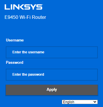 2. Ingrese sus credenciales y luego haga clic en Apply (Aplicar). Si no cambió sus credenciales, el Username (nombre de usuario) y Password (contraseña) predeterminados son admin.