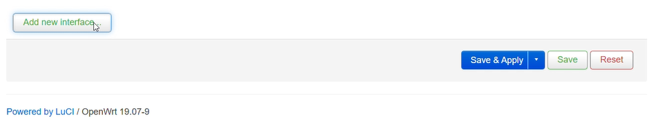 Network → Interfaceの画面で左下の「Add new interface」を選び新規インターフェース作成をします