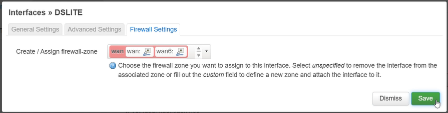 Firewall Settingsでは、wanのzoneに追加します(ここを忘れると通信が遮断されます)
